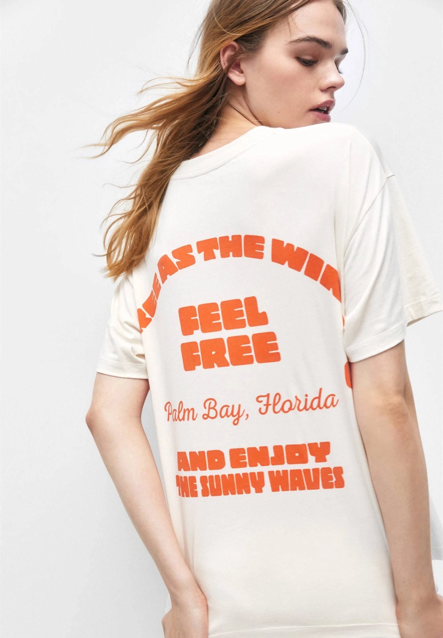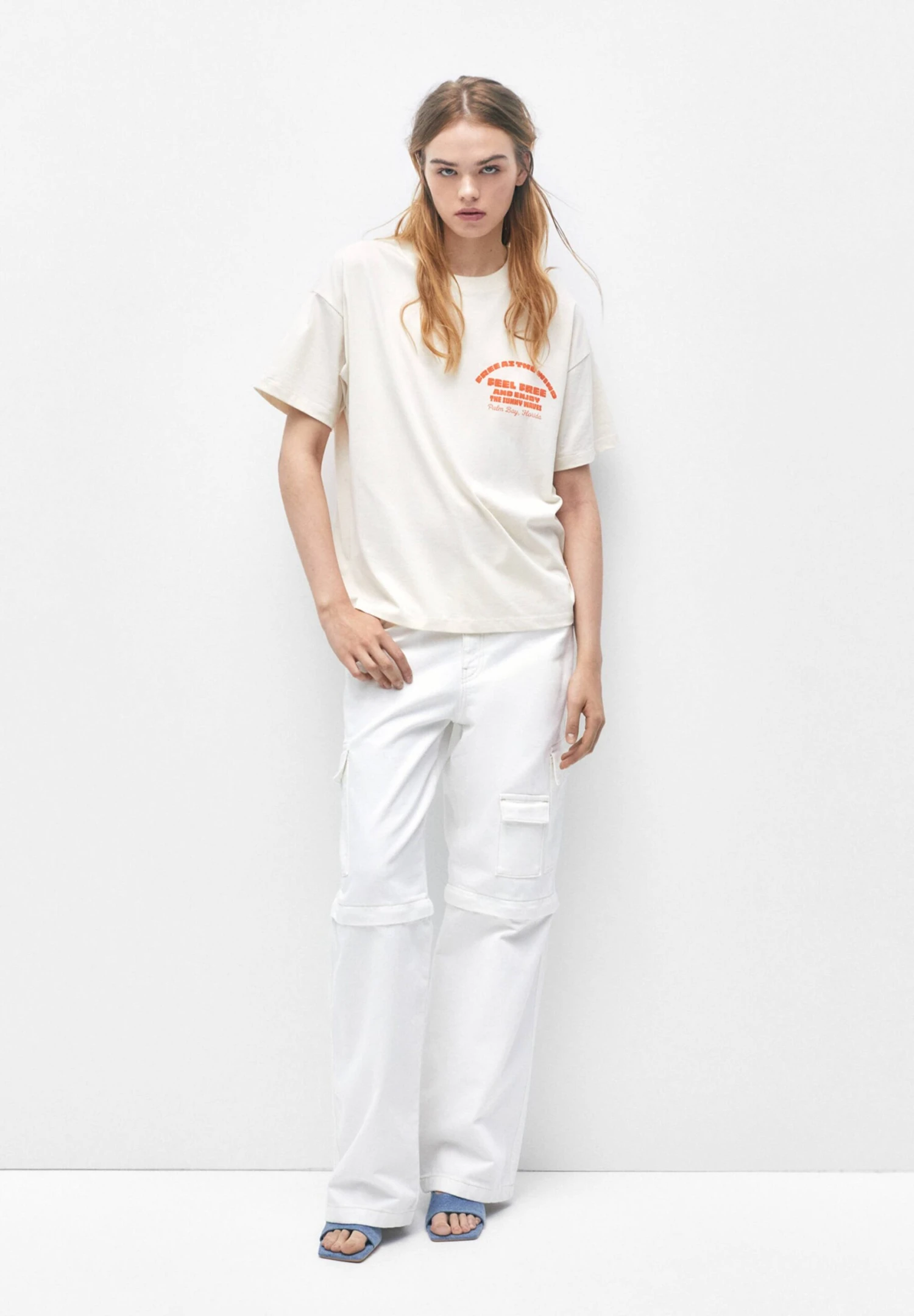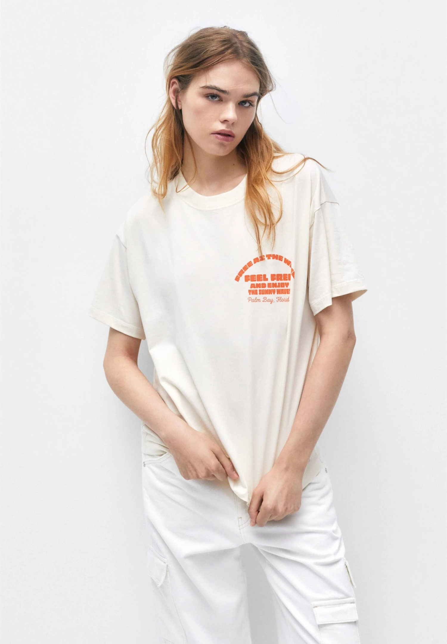 PULL & BEAR Short Sleeve – T-Shirt Print – Beige