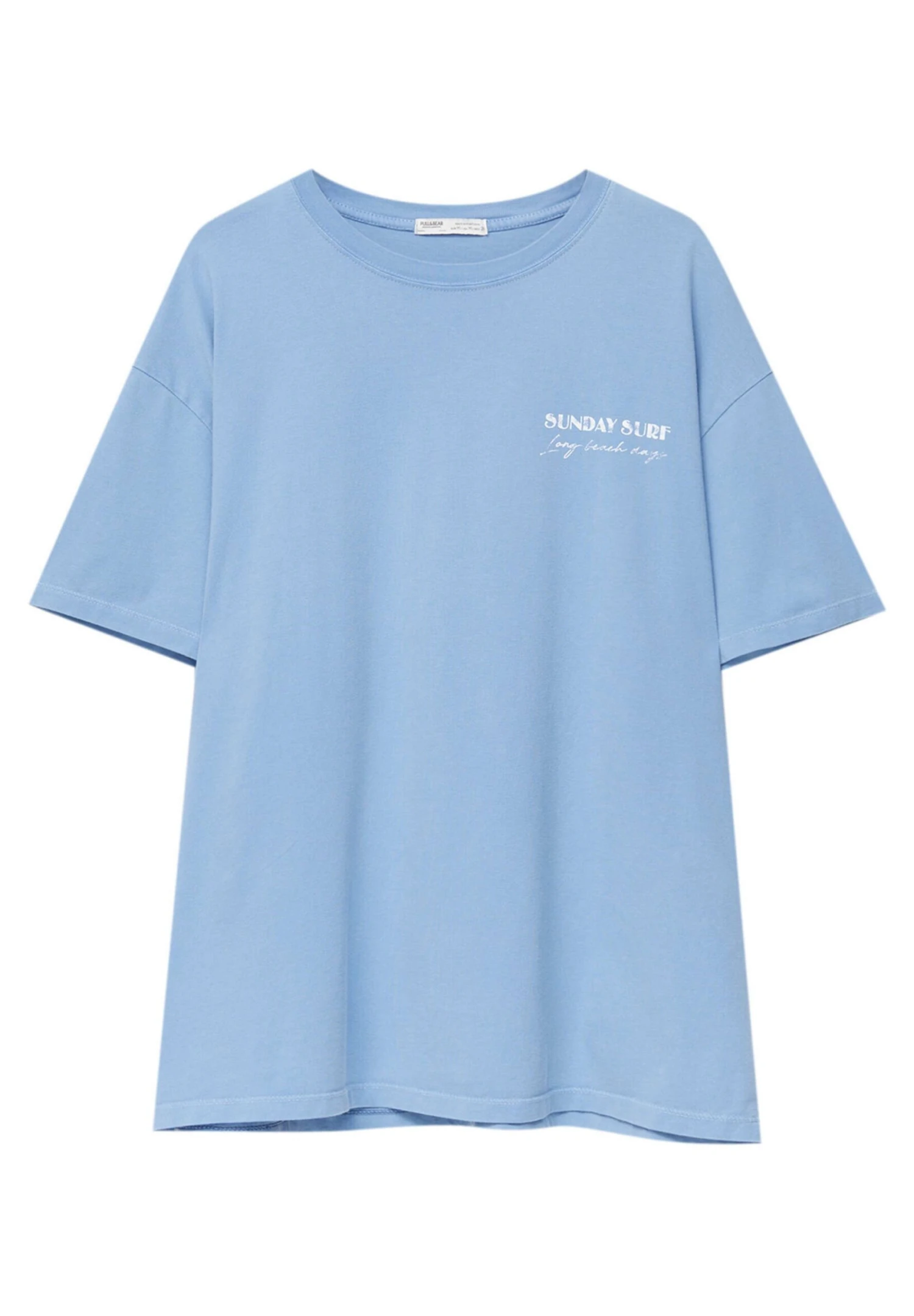 PULL & BEAR Short Sleeve- T-Shirt Print – Blue