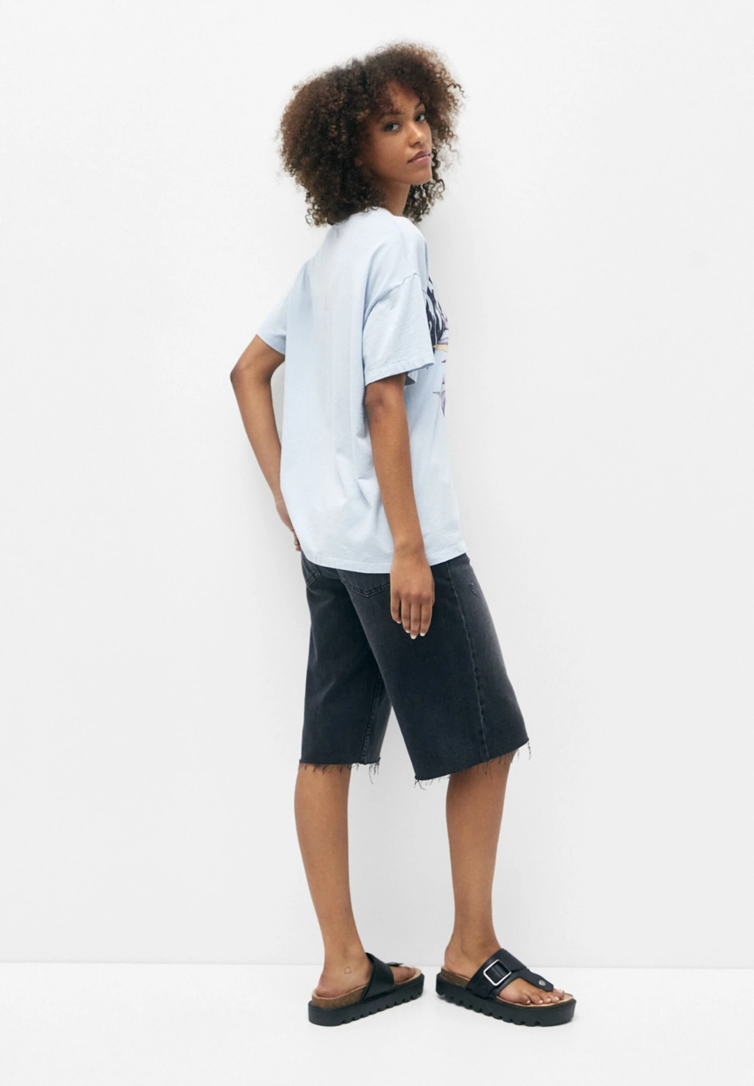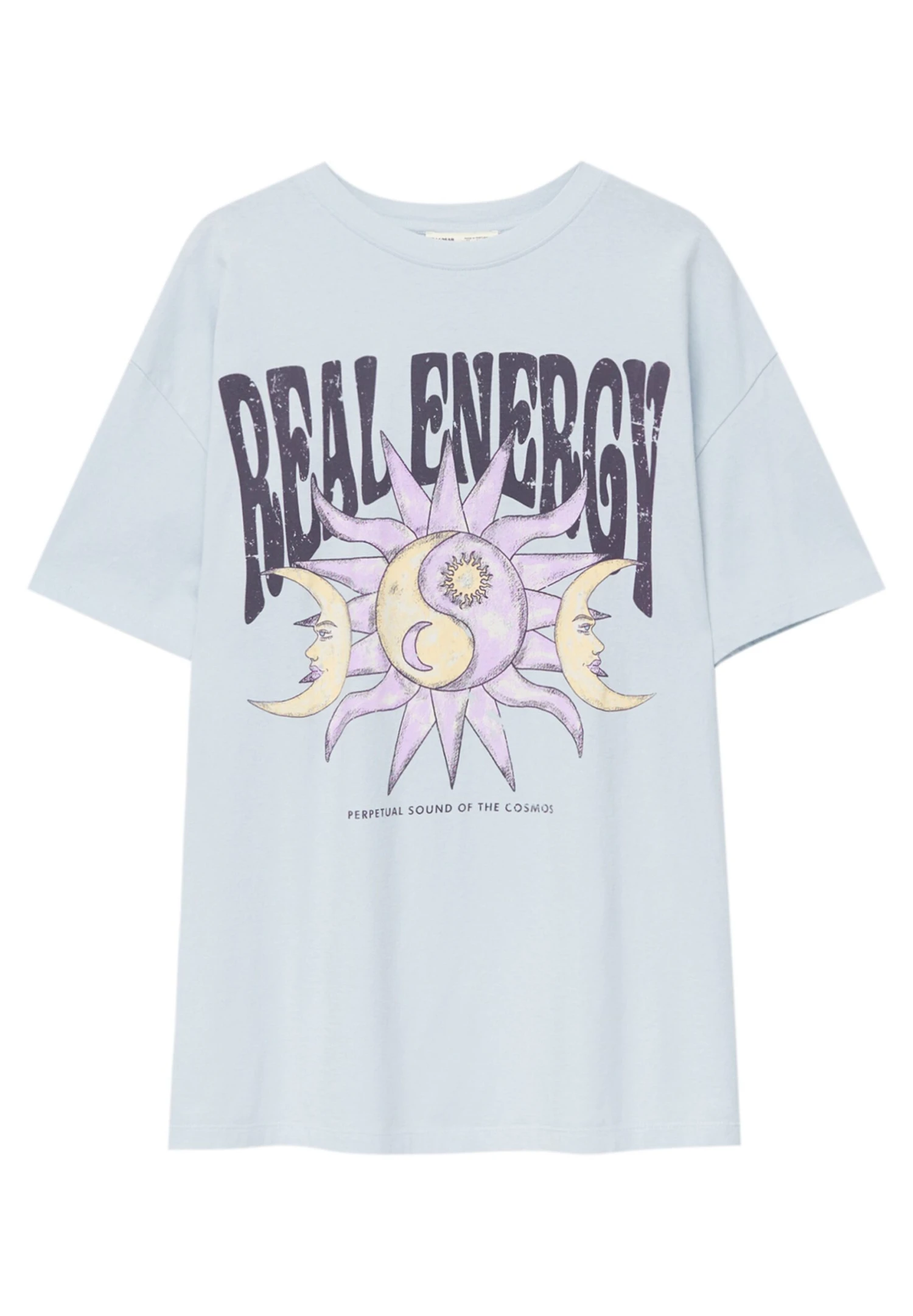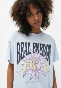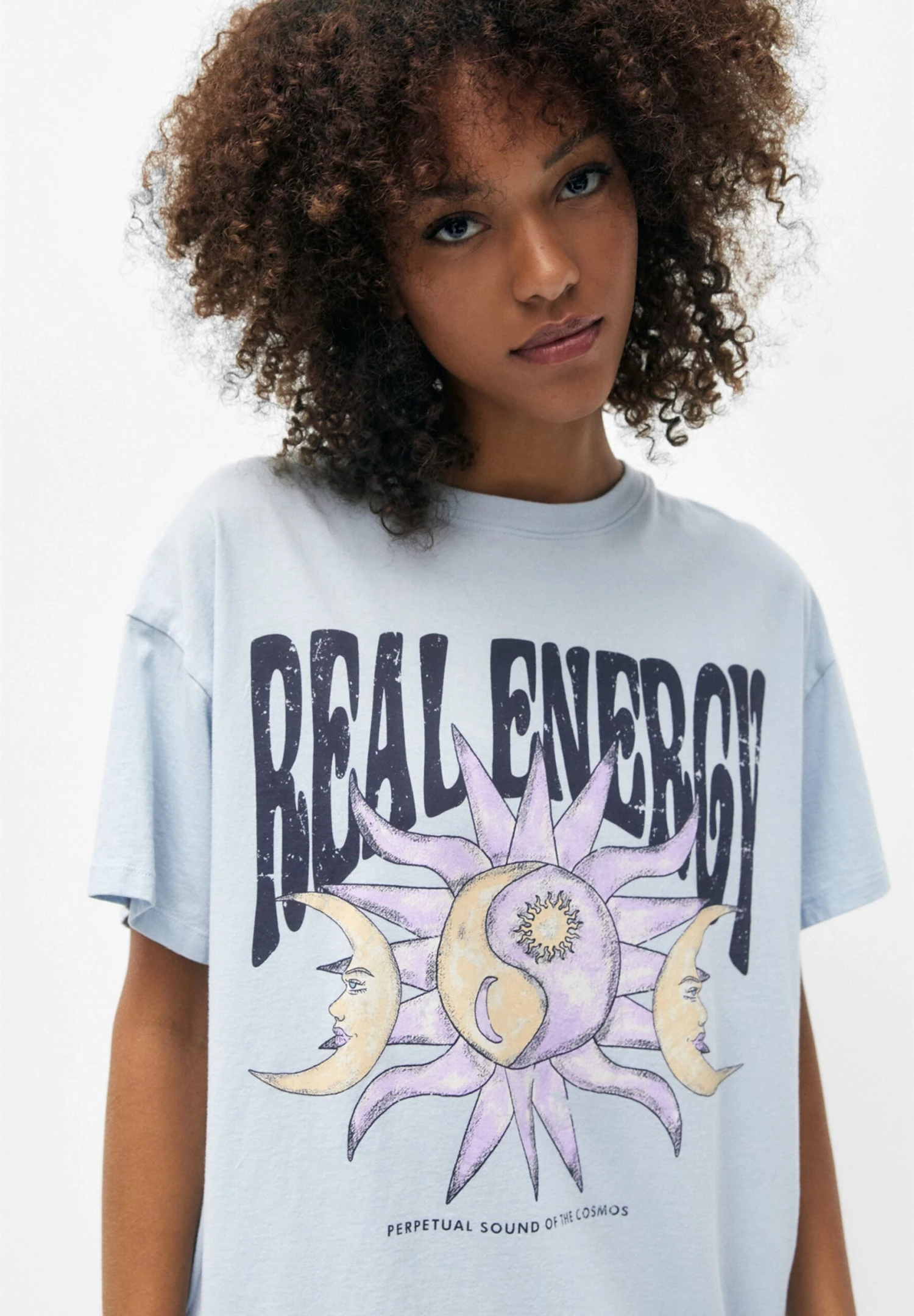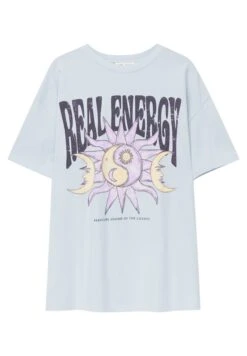 PULL & BEAR Short Sleeve Yin-Yang – T-Shirt Print – Light Blue