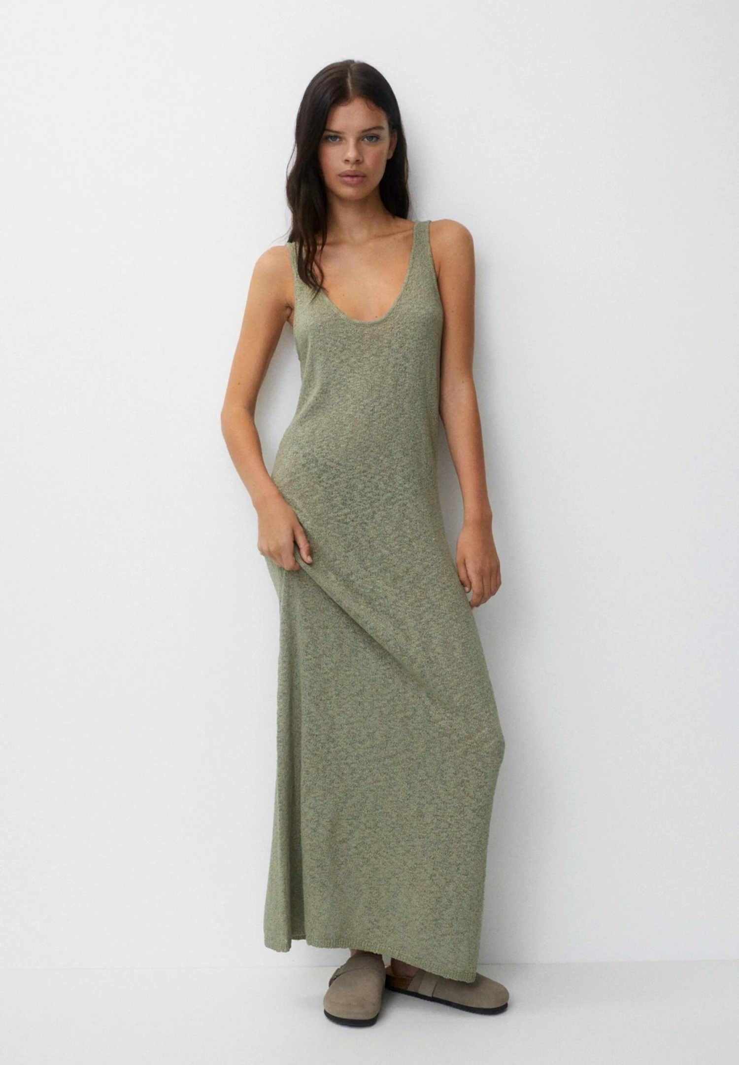 PULL & BEAR Short Strappy – Gebreide Jurk – Khaki