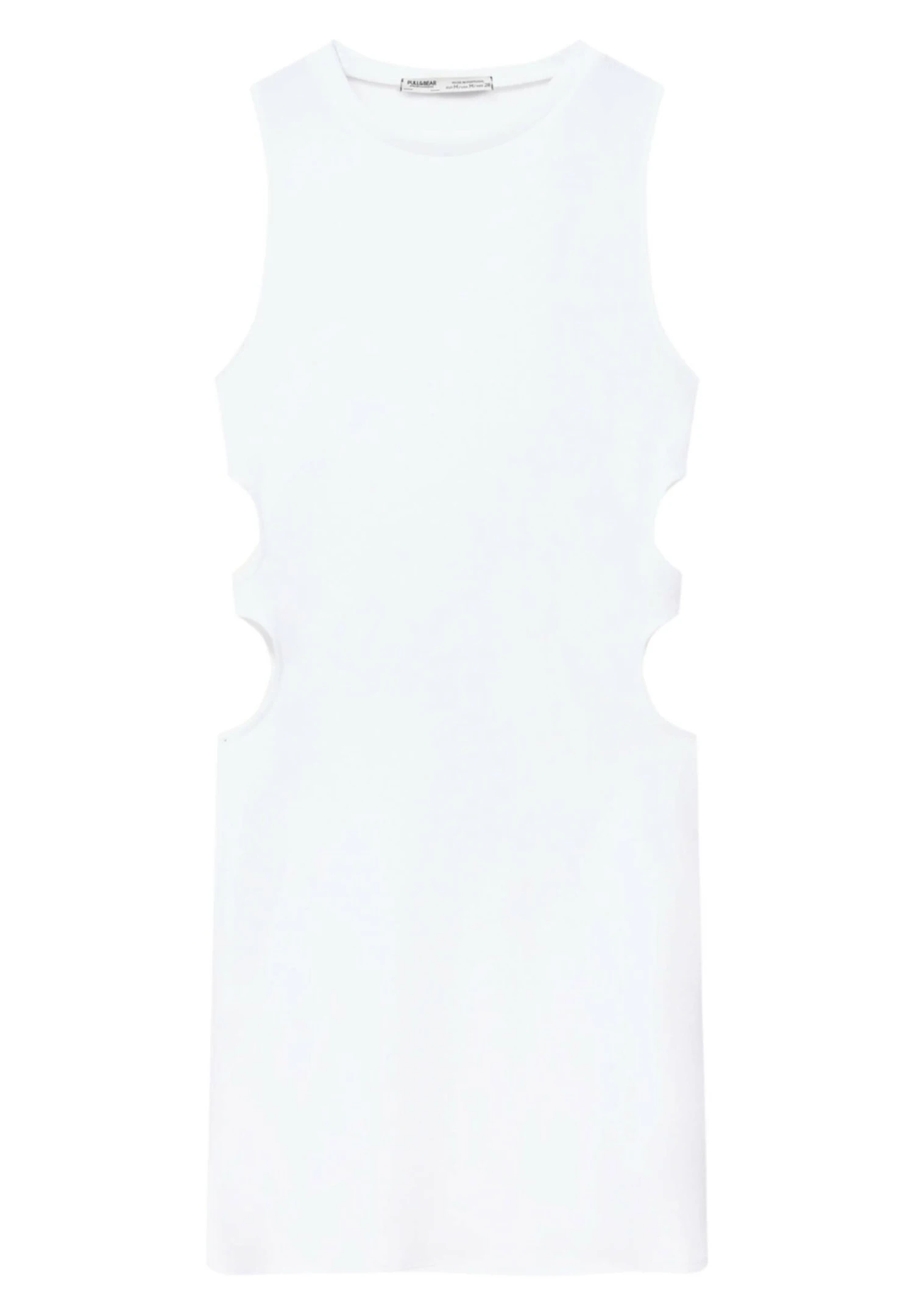 PULL & BEAR Short With Cut-Out Detail- Gebreide Jurk – White