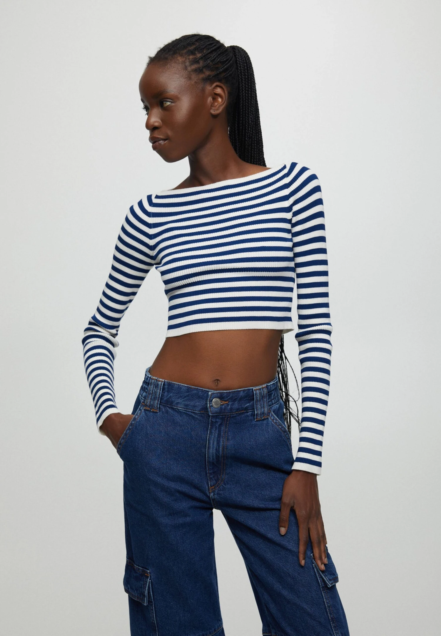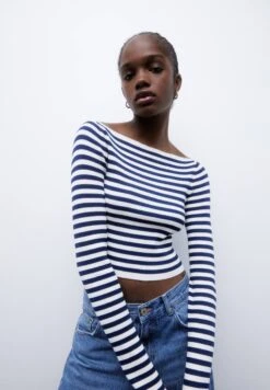 PULL & BEAR Striped Boat Neck – Trui – Blue Denim