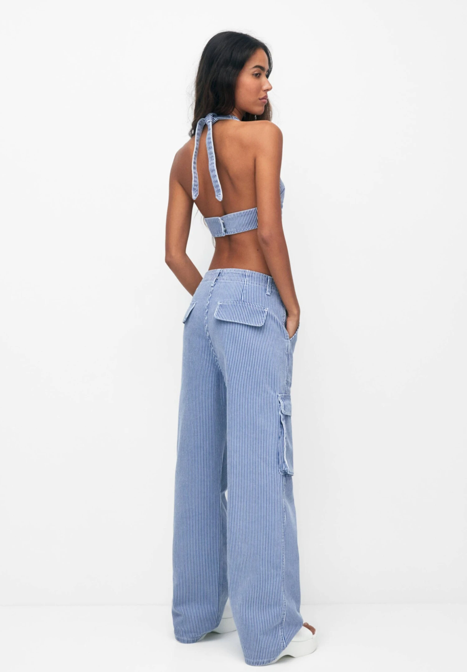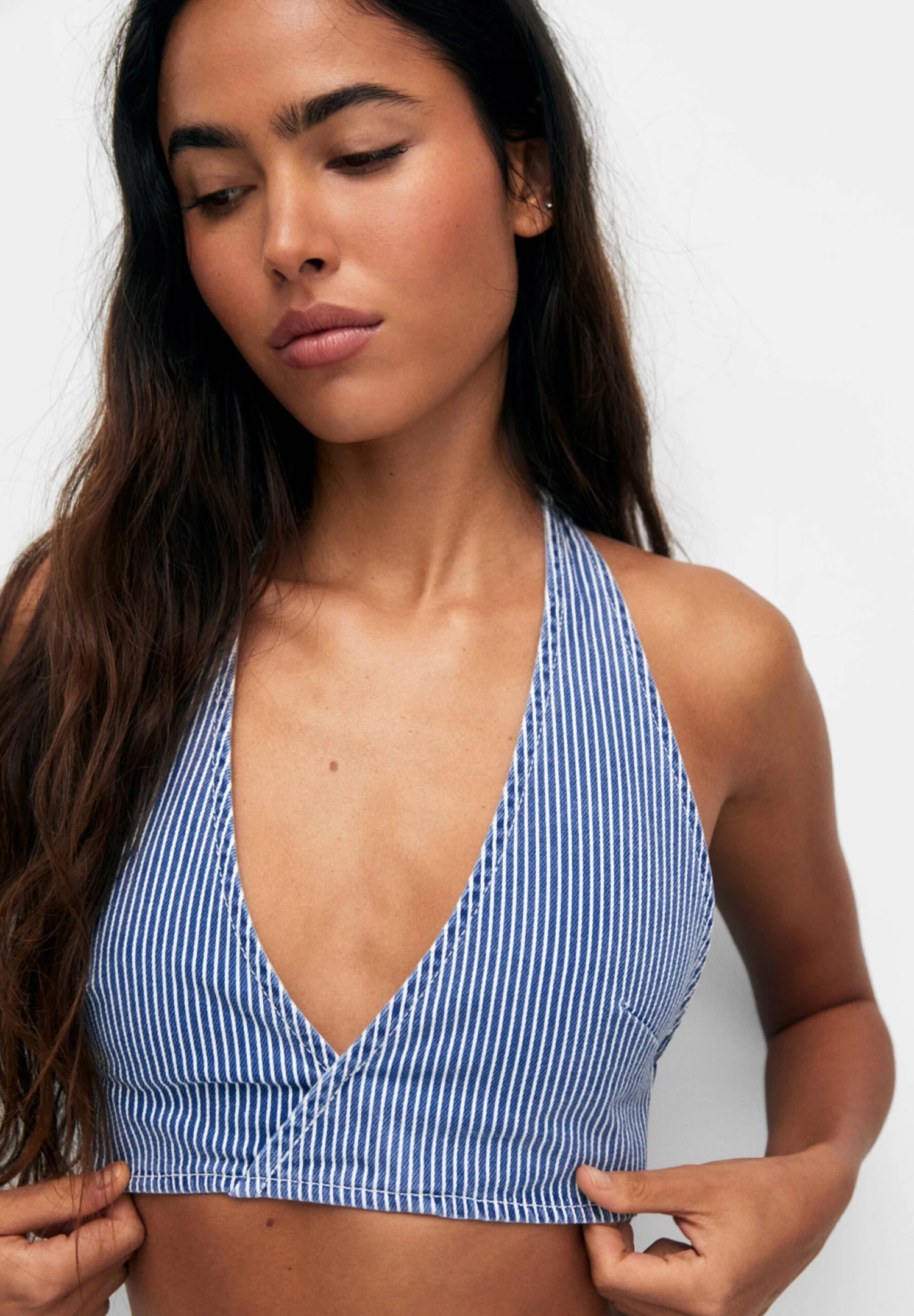 PULL & BEAR Striped Halter – Blouse – Blue