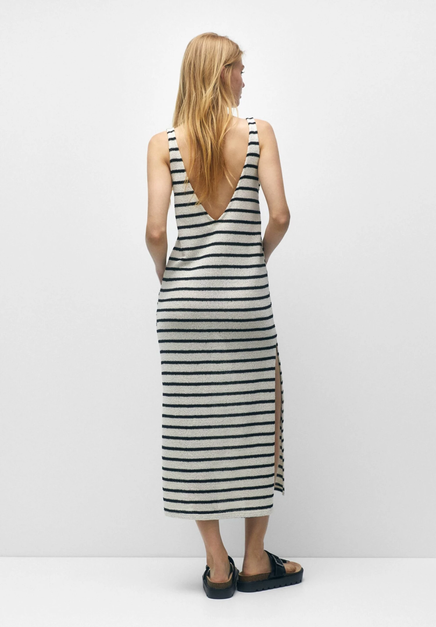 PULL & BEAR Striped Midi – Gebreide Jurk – Black
