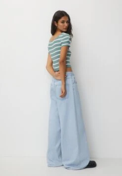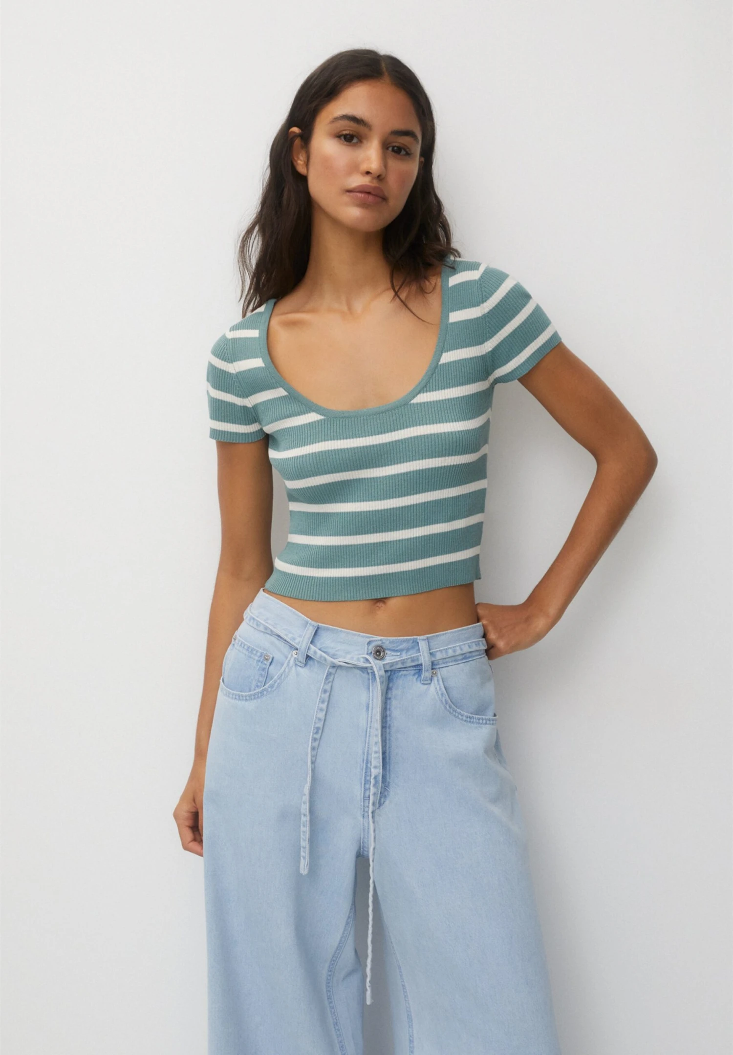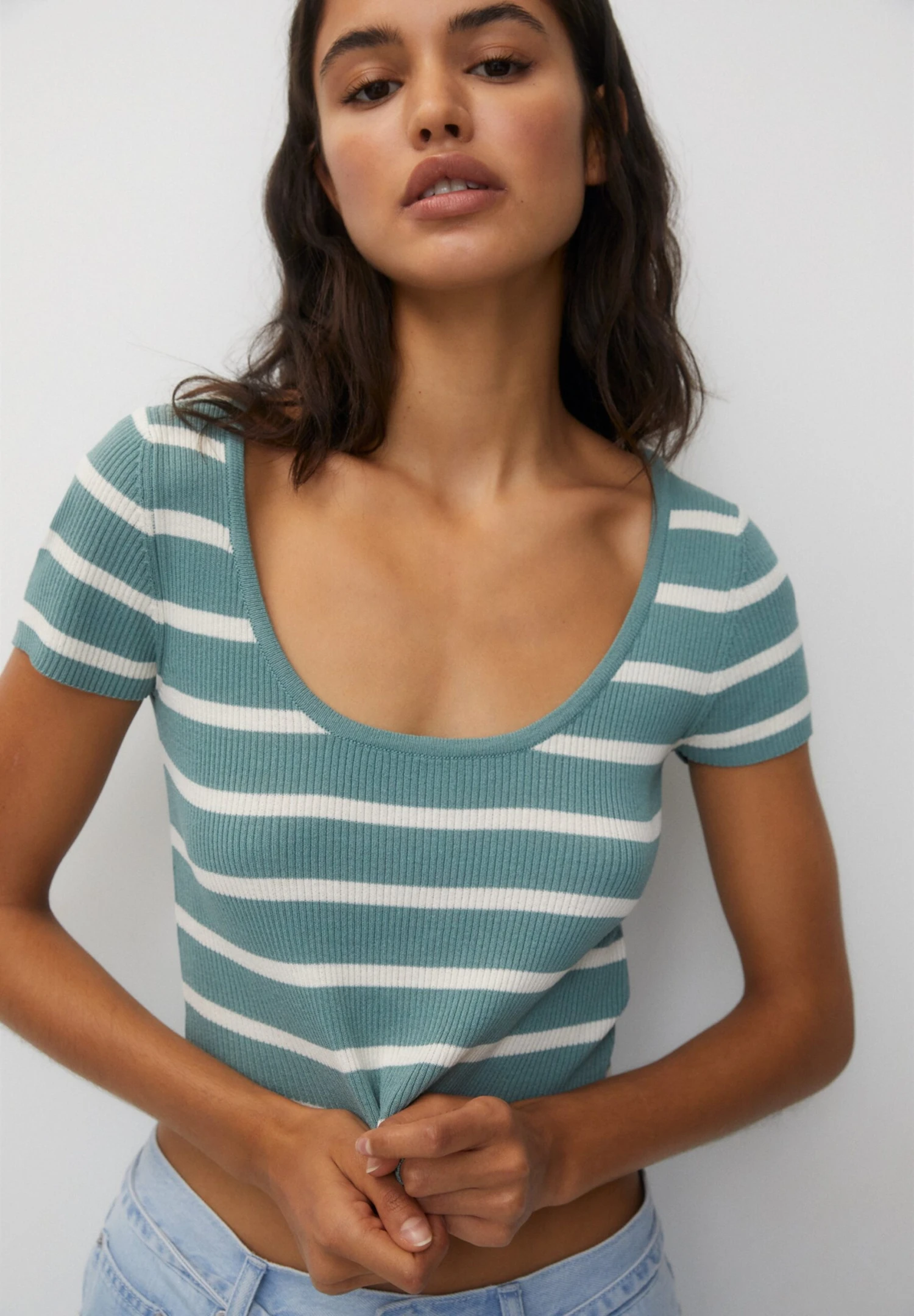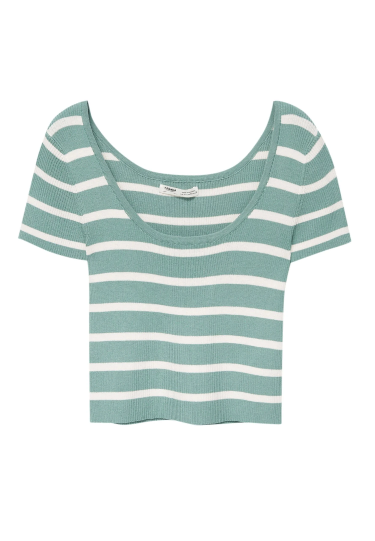 PULL & BEAR Striped-Short Sleeve- T-Shirt Print – Light Green