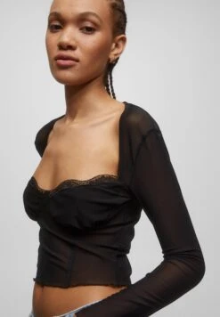 PULL & BEAR Trimmed- Blouse – Black