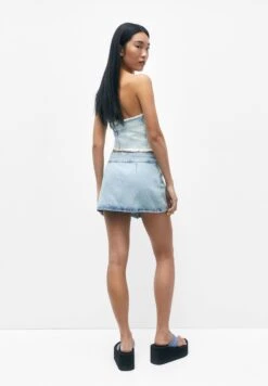 PULL & BEAR With Box Pleats- Wikkelrok – Stone Blue Denim