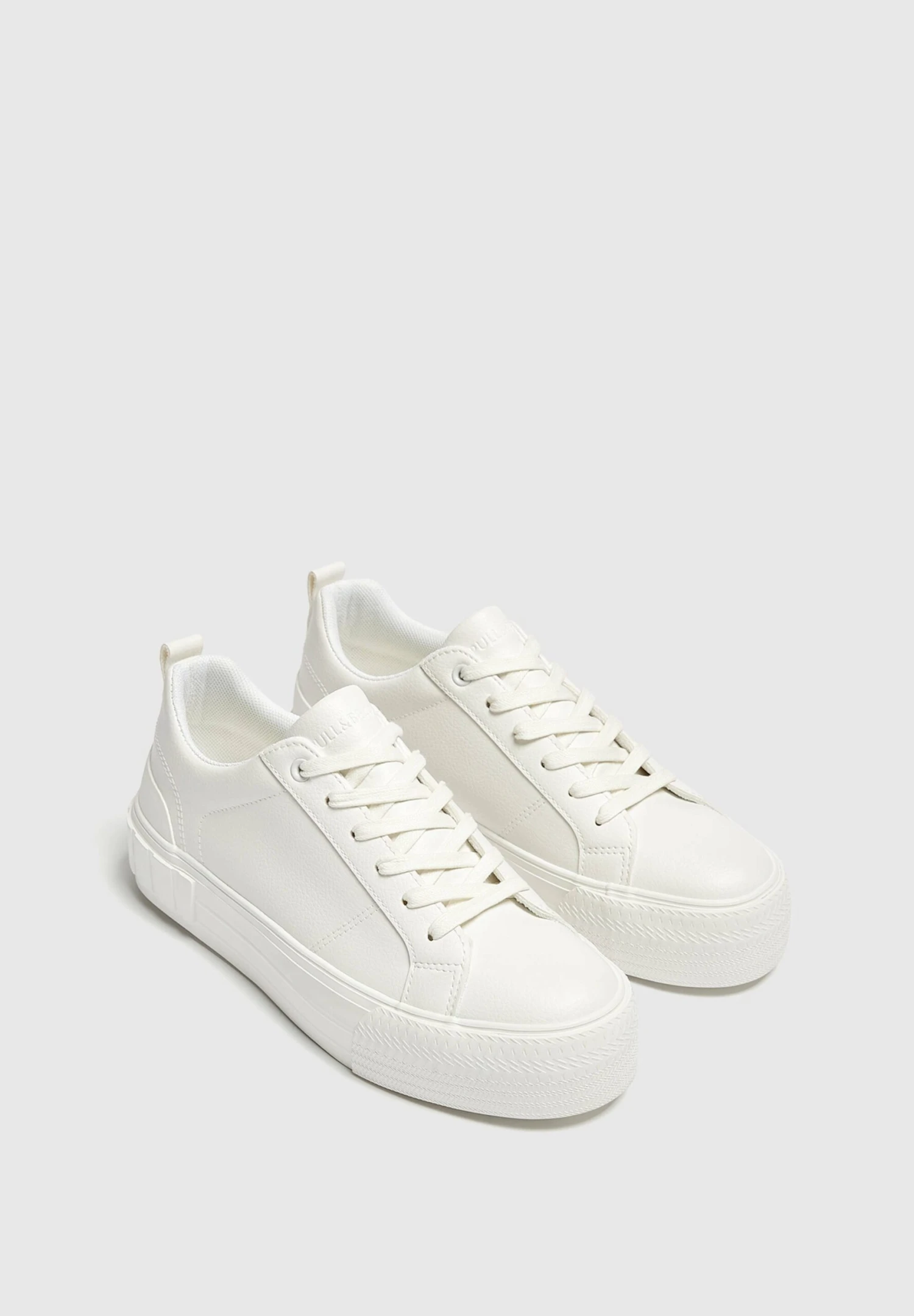 PULL & BEAR With Pull Tab Detail – Sneakers Laag – White