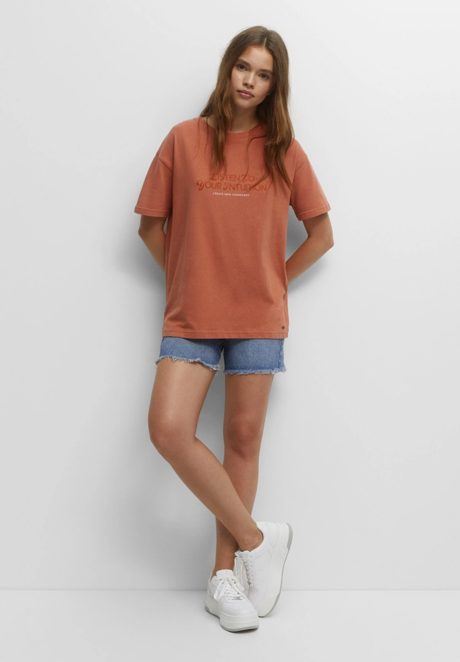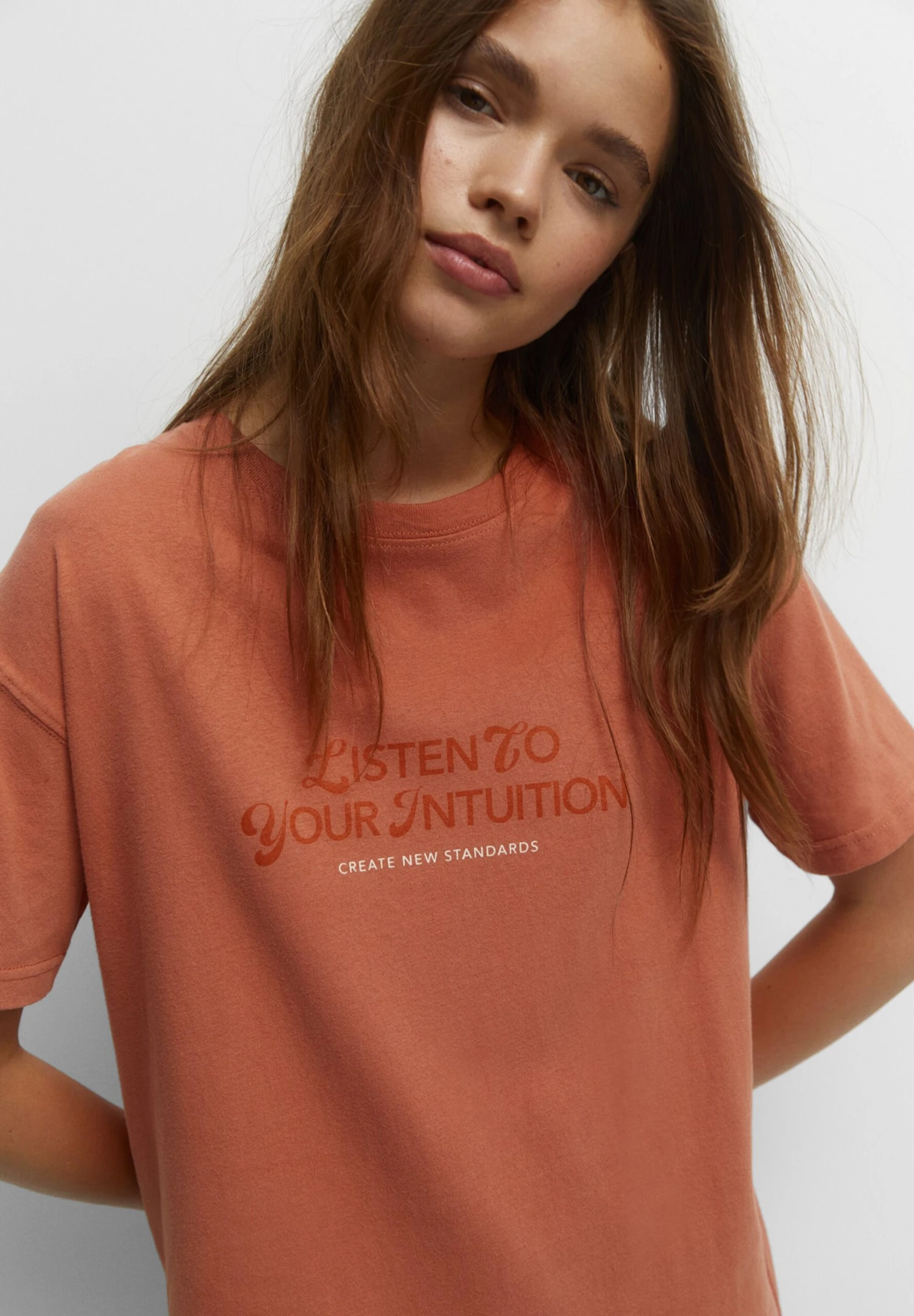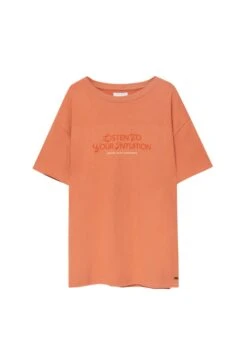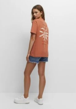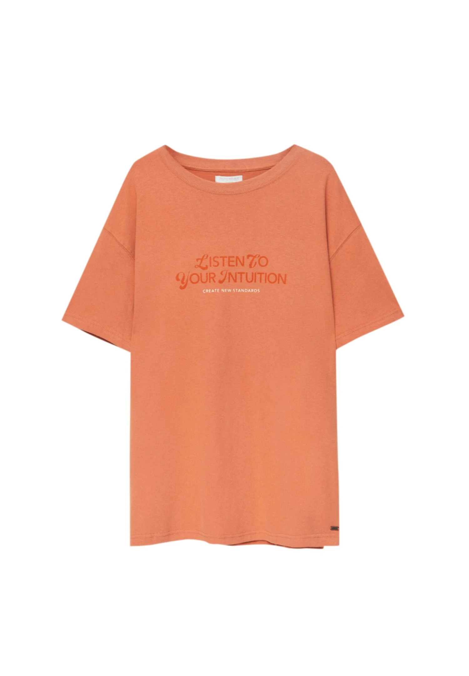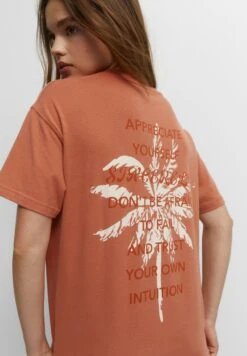 PULL & BEAR With Slogan And Palm Tree – T-Shirt Print – Orange